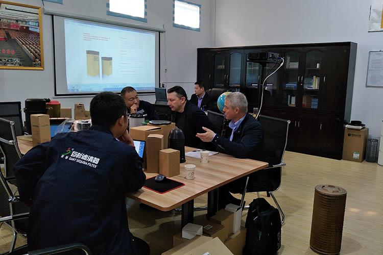 2018年11月12日,欧洲客户来到公司考察参观,在友好愉快的交流中,公司与客户就工程机械空滤业务领域的合作达成初步合作意向。